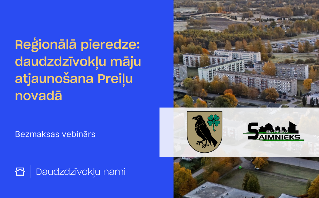 Vebinārā aplūkosim esošo situāciju Preiļu novada dzīvojamajā fondā, analizēsim renovācijas projektu īstenošanas pieredzi un to rezultātus, kā arī būtiskākos izaicinājumus, kas ietekmē dzīvokļu īpašnieku lēmumus par ēku atjaunošanu.