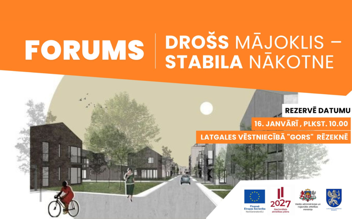 2026. gada 16. janvārī Latgales vēstniecībā “GORS” Rēzeknē notiks Latgales plānošanas reģiona organizēts forums “Drošs mājoklis – stabila nākotne”, kas pulcēs pašvaldību, valsts iestāžu un privātā sektora pārstāvjus, lai diskutētu par kvalitatīvu un ilgtspējīgu mājokļu pieejamības veicināšanu reģionos, īpaši Latgalē.